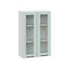 Прозрачное стекло позволяет увидеть содержимое, не открывая дверцы, а также делает модуль визуально легче. Изящные металлические ручки — элегантный штрих в оформлении фасадов.
