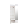 На открытой вешалке можно распределить сумки и повседневную верхнюю одежду. В распашном шкафу найдется место для головных уборов и сезонных предметов гардероба. За фасадом с зеркалом скрыто отделение с продольной штангой, где есть пространство для одежды на плечиках. Банкетка с мягкими сиденьем и спинкой добавит интерьеру нотки уюта.