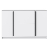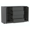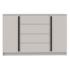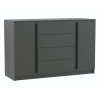 В выдвижных ящиках удобно распределить самые разные предметы: от белья до аксессуаров. За распашными фасадами скрыты отделения с полками, где можно расположить объемные коробки, пледы и домашний текстиль. Вертикальная фрезеровка добавляет интерьеру стильные акценты.