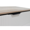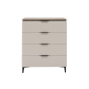Удобные ящики выдвигаются на полную глубину и позволяют находить нужный предмет даже в спешке. Матовые фасады с декором из вертикальных линий и лаконичными ручками создают элегантный облик мебели. Небольшие опоры гарантируют устойчивость конструкции и облегчают уборку.
