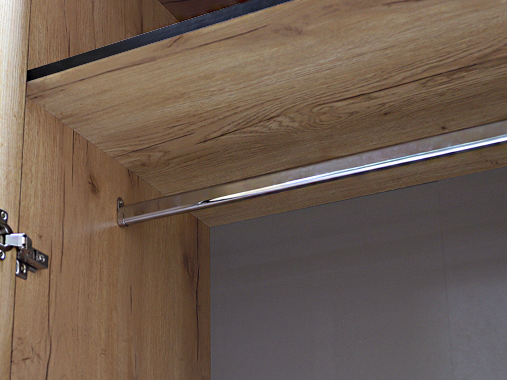 Вместительная модель поделена на секции, благодаря которым можно быстро находить нужную вещь даже в спешке. Фасады с текстурой дерева и зеркальные вставки позволяют сделать интерьер более уютным и привлекательным.